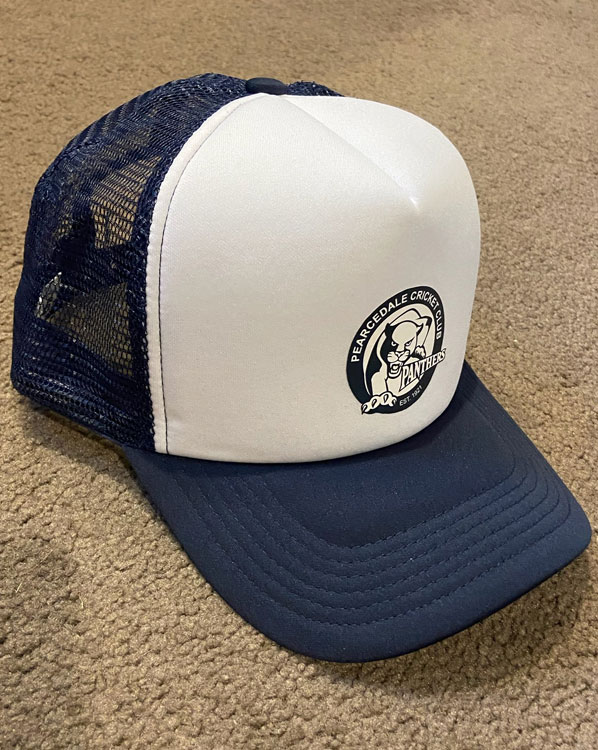 Mid weight 100% cotton front and peak, 100% polyester mesh back. One size fits all